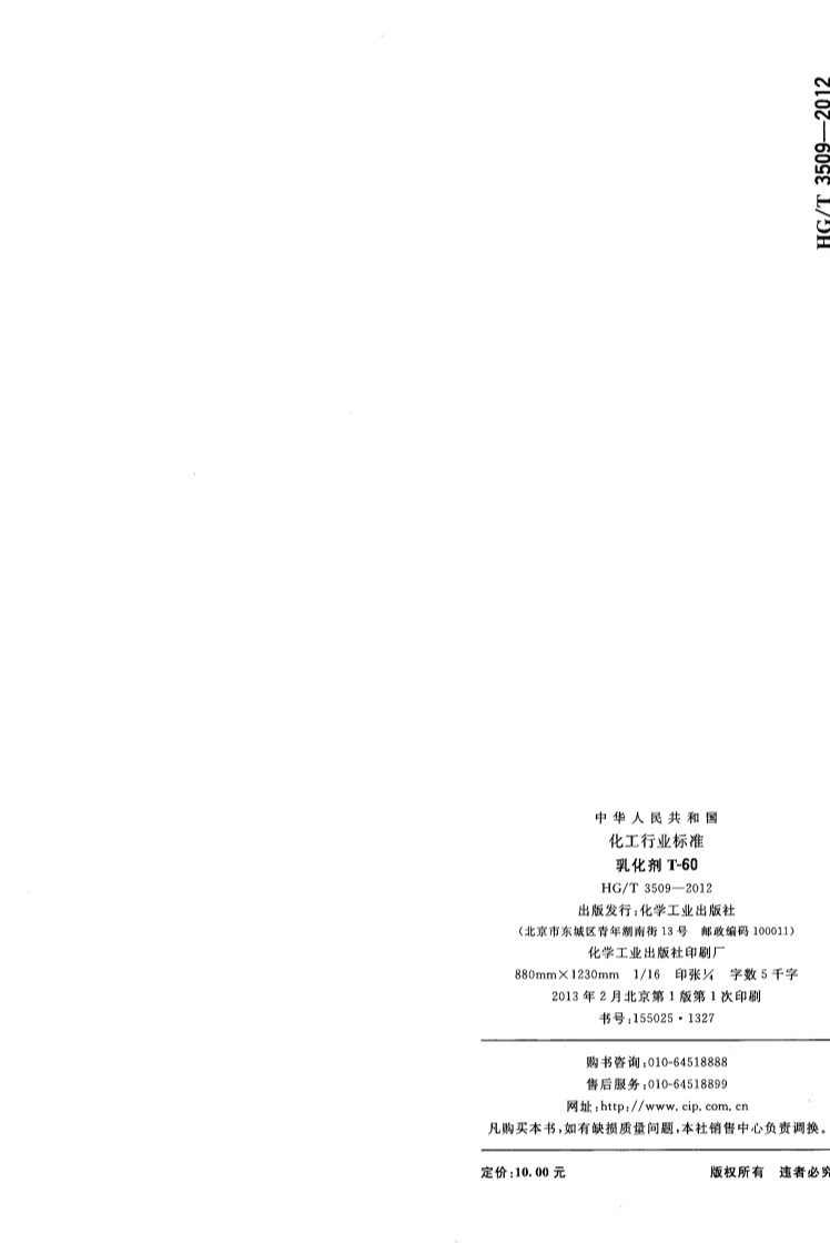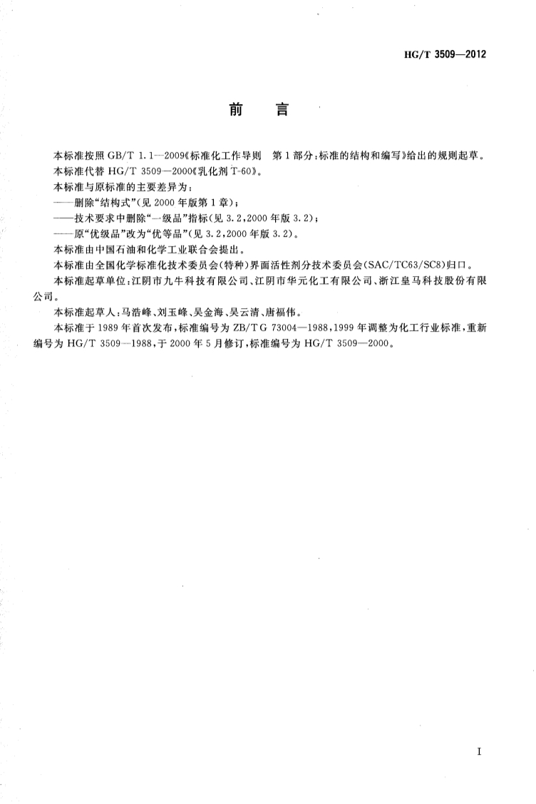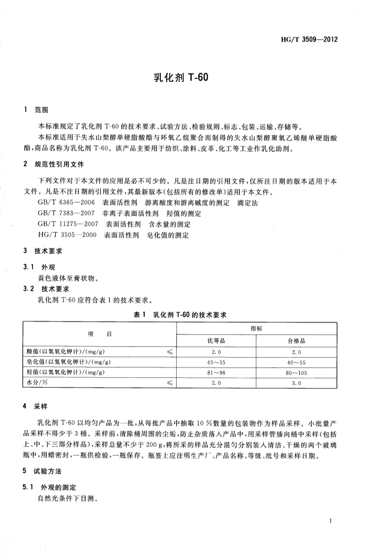 HGT 3509-2012 乳化剂T-60产品标准