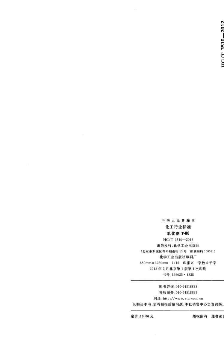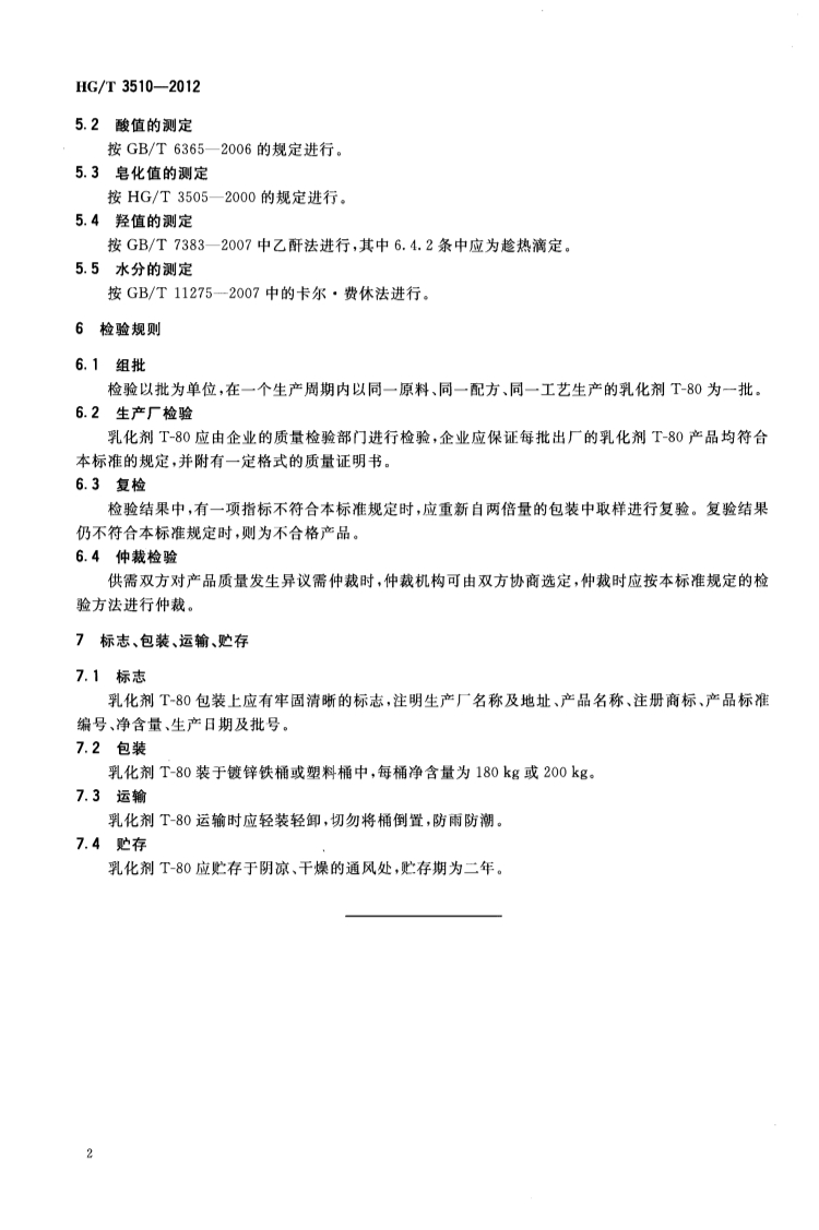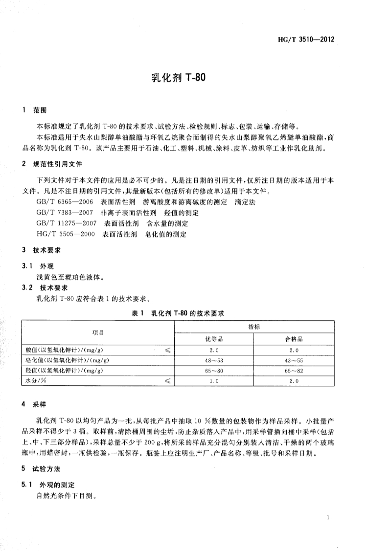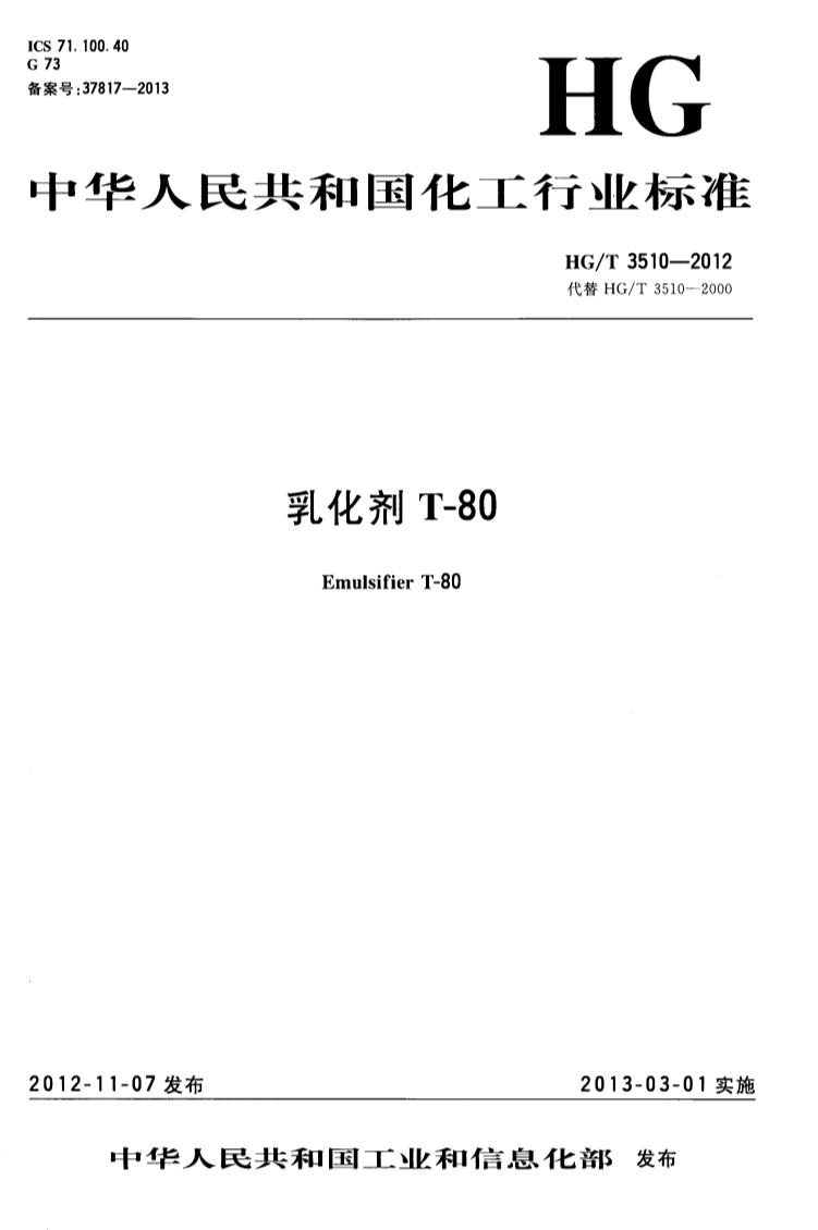 HGT 3510-2012 乳化剂T-80产品标准